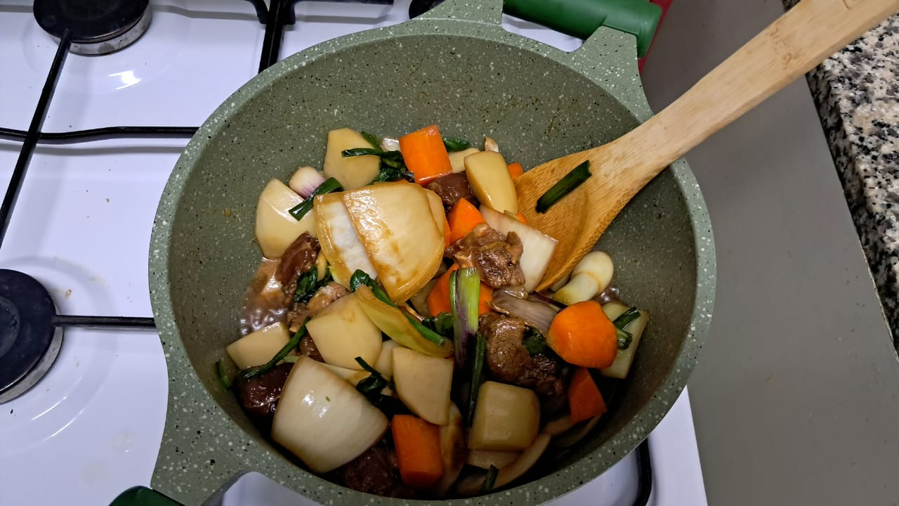 요리에는 소고리 200g / 양파 1개 / 감자 1개 / 당근 1개 / 파는 전부를 사용했으니, 사실상은 5000원도 안 된 비용이 된 것입니다.