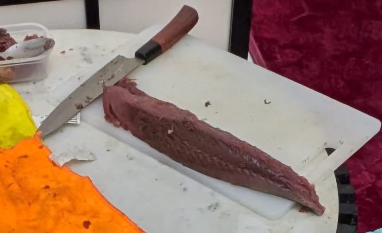 칼이 잘 안 들어가는 부위들이 특별히 있었어요. 그곳은 안쪽에 비늘이 있어서 그 부위를 제거하고 나니까 칼이 잘 들어갔습니다..