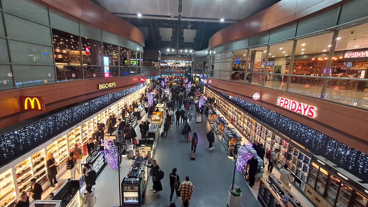 이스탄불 공항 면세점이 있는 출국 대기장의 전경