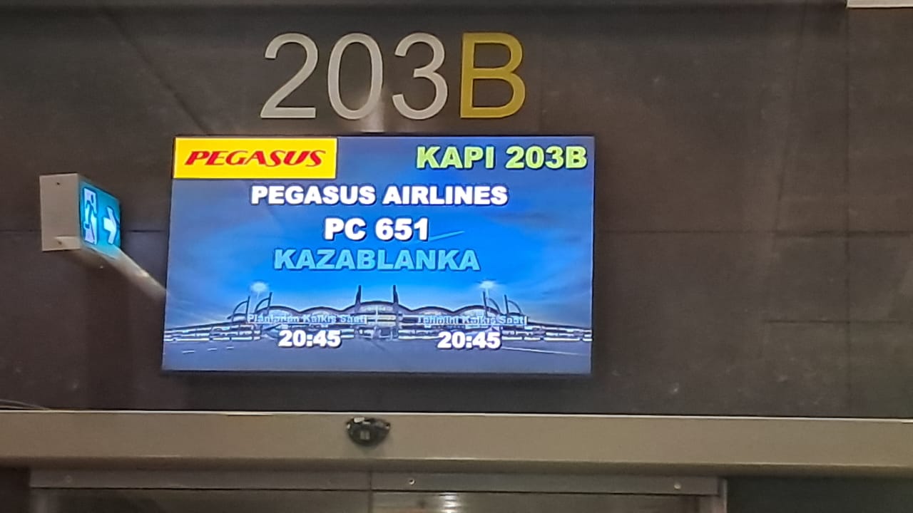 카사 블랑카로 출발하는 이스탄불 공항의 게이트 안내 표지판